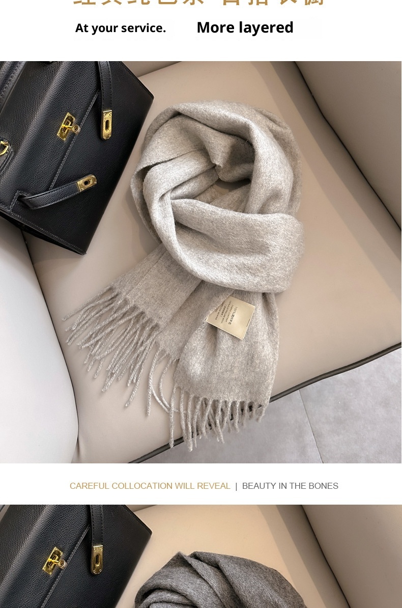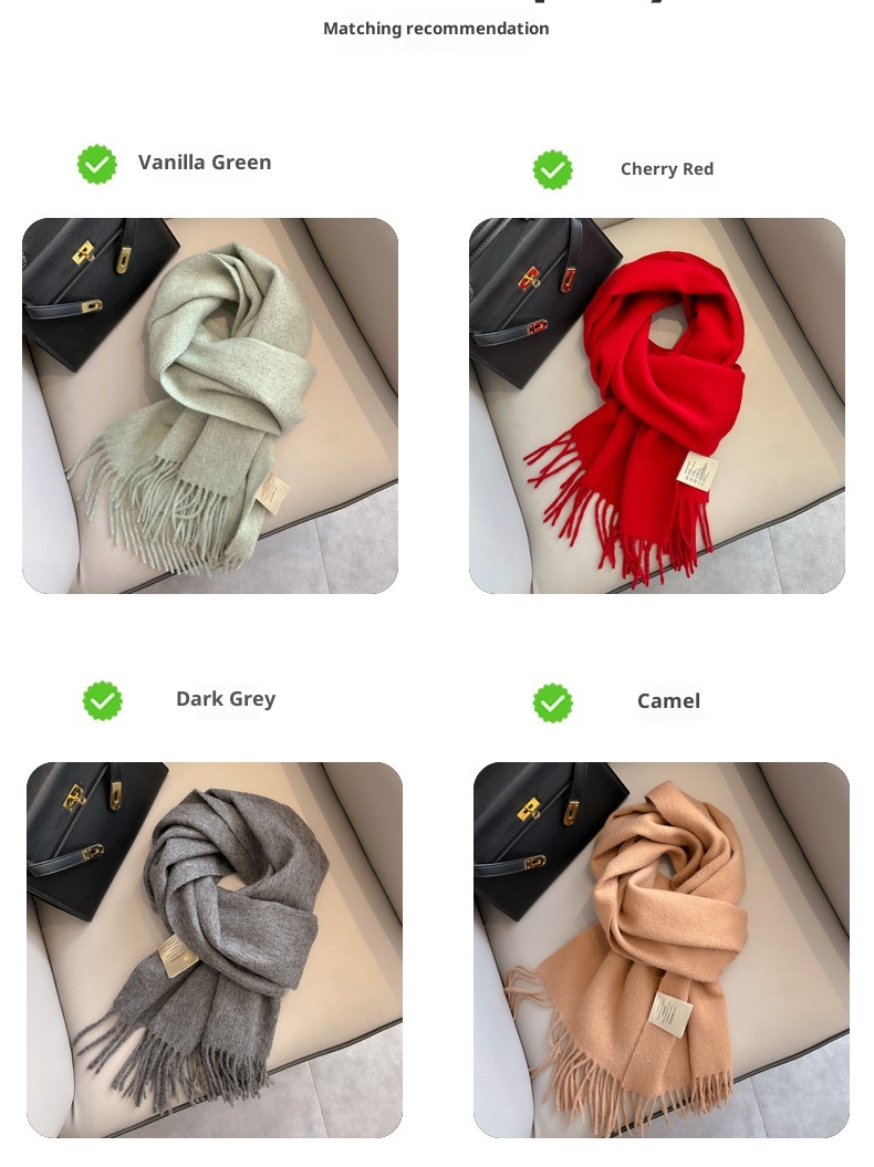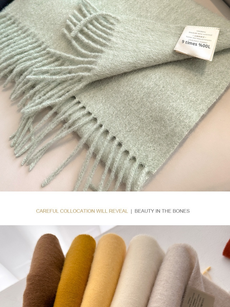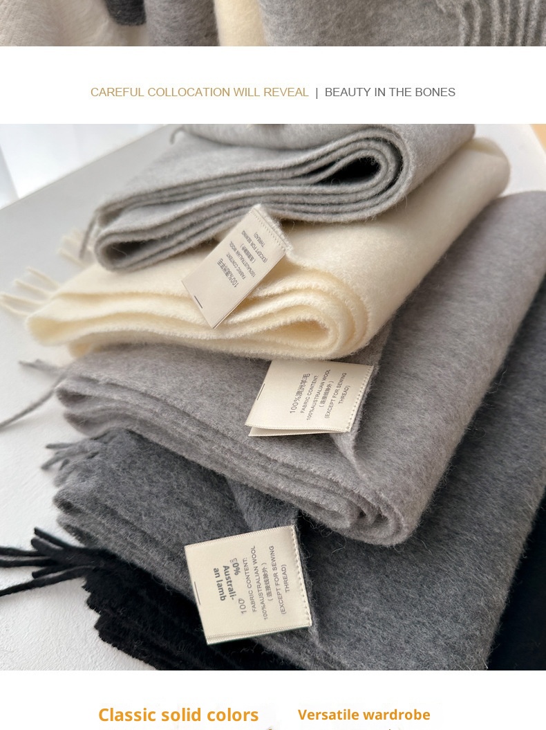 Pure Wool Students Warm-keeping All-matching Tassel Narrow Scarf Couple Wholesale